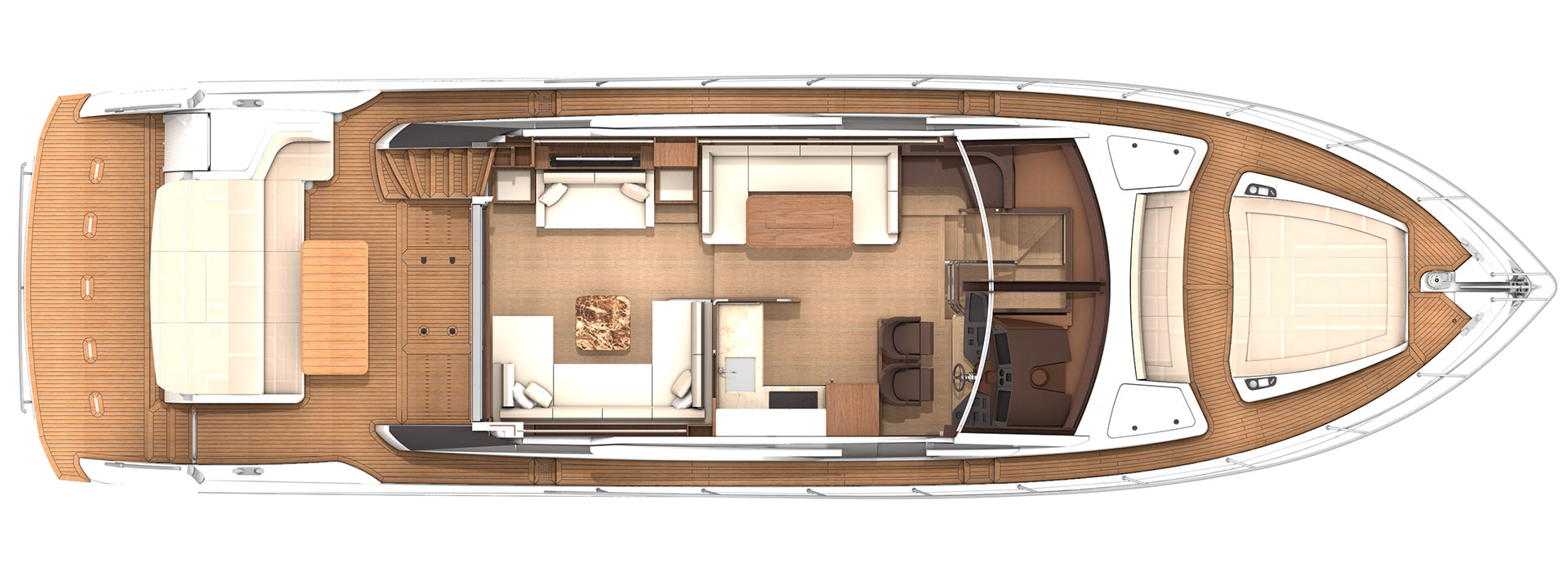 Al suo interno la “60 Fly” mostra la propria raffinatezza ed un design accattivante, con sistemi di intrattenimento all’avanguardia, tessuti Made in Italy di ottima qualità e tanta luce naturale, ogni ambiente a bordo è più stupefacente dell’altro.