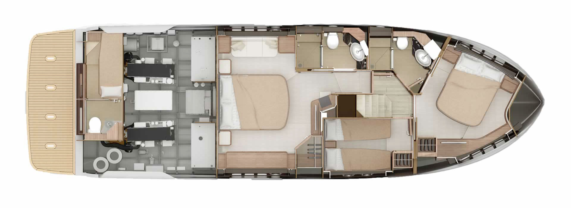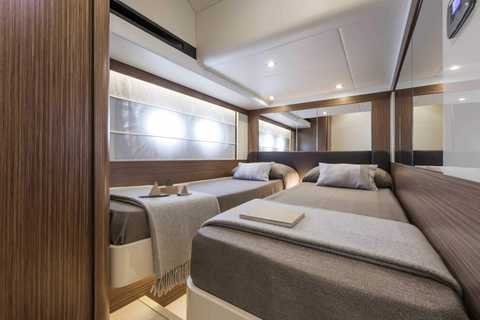 The interior of “Navetta 52” is outstanding for the excellent use of space inside the large and thoughtfully designed cabins: woods, fabrics, high quality Made in Italy leathers stand out; in the bathrooms, the most polished materials and furniture offer maximum comfort.